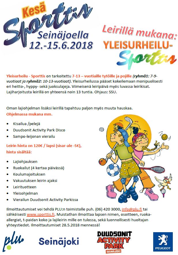 Pohjanmaan Liikunta ja Urheilu ry järjestää perinteisen Sporttisleirin tänäkin vuonna Seinäjoella. Leiri järjestetään 12-15.6 ja mukana on myös yleisurheilun lajileiri. Leirin ohjauksesta vastaa SSU:n osaavat nuoret.